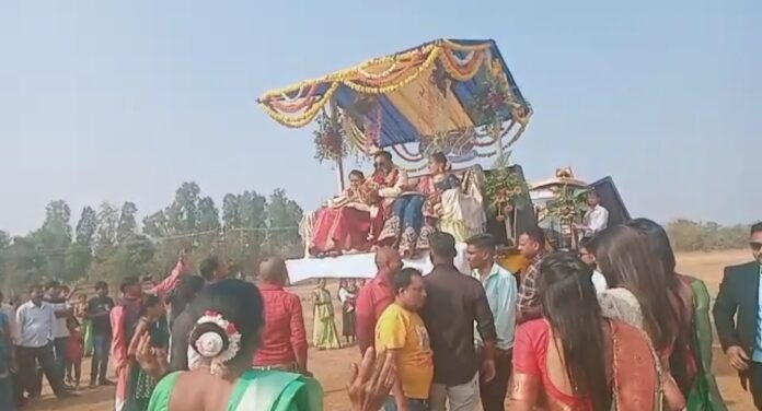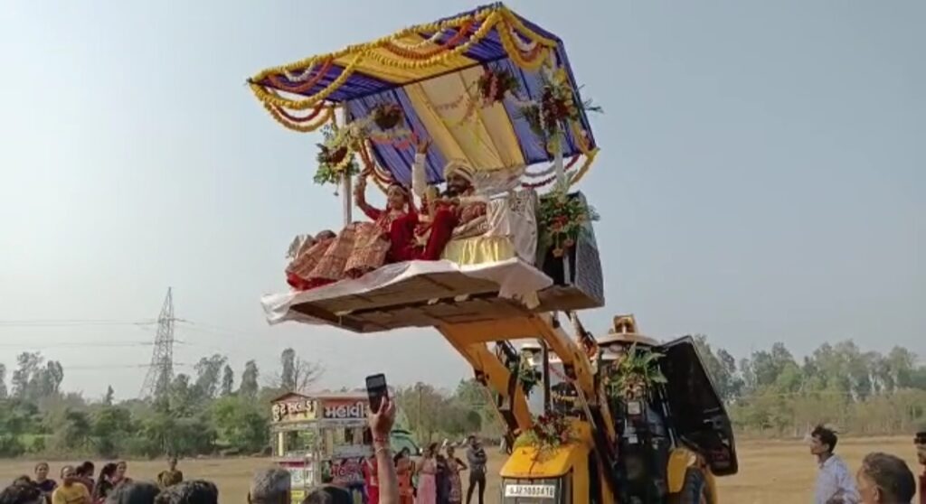 નવસારી જિલ્લાના ચીખલી તાલુકાના એક ગામમાં યુવકે અનોખો વરઘોડો કાઢ્યો હતો. આ યુવકે ગામમાં જ આદિવાસી પરંપરા મુજબ લગ્ન કર્યા હતા અને પોતાનો વરઘોડો જે.સી.બી.માં કાઢ્યો હતો જે આકર્ષણનું કેન્દ્ર બન્યું હતું.
