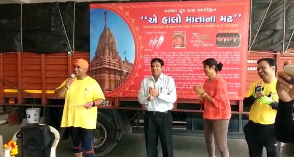 આઝાદીના અમૃત મહોત્સવના અંતર્ગત પેડલ ફોર અવેરનેસ અને ફીટ ઇન્ડિયા મૂવમેન્ટના સંદેશ સાથે આસ્થા ગ્રુપ સૂરતના ૭૫ સાઇકલ યાત્રીઓ દ્વારા રેકોર્ડ સ્થાપવા માટે સુરતથી કચ્છના આશાપુરા માતાજીના મઢ સુધી ૭૫૦ કિલોમીટર સુધી સાઇકલ યાત્રાનું આયોજન કરવામાં આવ્યું છે જેઓ આજે સુરતથી નીકળ્યા છે જેઓ આજરોજ અંકલેશ્વર શહેરમાં આવેલ પાટીદાર સમાજની વાડી ખાતે આવી પહોંચતા તેઓનું ભરૂચ-અંકલેશ્વર સાઇકલીસ્ટ ગ્રુપના નીલેશ ચૌહાણ અને સ્વેતા વ્યાસે ભવ્ય સ્વાગત કર્યું હતું.