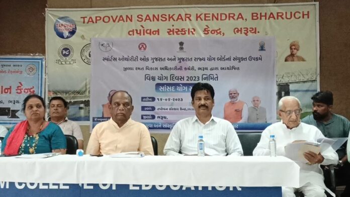 સ્પોર્ટ્સ ઓથોરિટી ગુજરાત અને ગુજરાત રાજ્ય યોગ બોર્ડના સંયુક્ત ઉપક્રમે જિલ્લા રમત વિકાસ અધિકારીની કચેરી દ્વારા વિશ્વ યોગ દિવસની ઉજવણી નિમિત્તે આ સ્પર્ધાનું આયોજન કરવામાં આવ્યું હતું. આ પ્રસંગે ભરૂચના સાંસદ મનસુખ વસાવા ભરૂચ ના ધારાસભ્ય રમેશ મિસ્ત્રી, ધર્મેશ મિસ્ત્રી, તપોવન સંસ્કાર કેન્દ્રના દિનેશભાઈ પંડ્યા તેમજ જિલ્લા રમત વિકાસ અધિકારી રાજનસિંહ ગોહિલ સહિત મોટી સંખ્યામાં સ્પર્ધકો ઉપસ્થિત રહ્યા હતા..