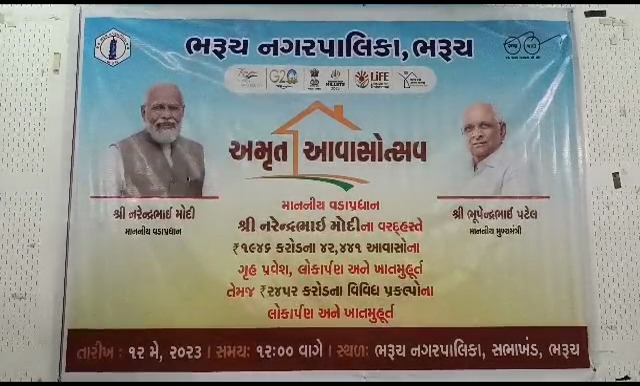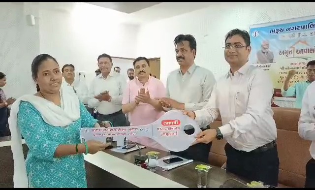ભરૂચમાં આ પ્રસંગે મહાનુભાવોના હસ્તે લાભાર્થીઓને સાંકેતિક ચાવીનુ વિતરણ કરાયું હતું. ભરૂચ પાલિકાના સભાખંડ ખાતે આ પ્રસંગે જિલ્લા કલેકટર તુષાર સુમેરા, પાલિકા પ્રમુખ અમિત ચાવડા, જિલ્લા અગ્રણી મારૂતિસિંહ અટોદરિયા સહિતના નગરજનો ઉપસ્થિત રહ્યાં હતા