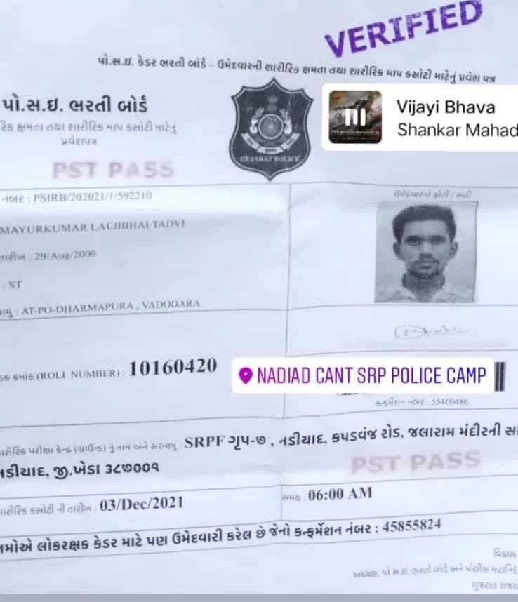- સીધું જ પરીક્ષા પાસ કર્યા ના કોલ લેટરમાં મયુર લાલજી તડવી નામના યુવાને પોતાનું નામ લખી ટ્રેનિંગ જોઈન્ટ કરી